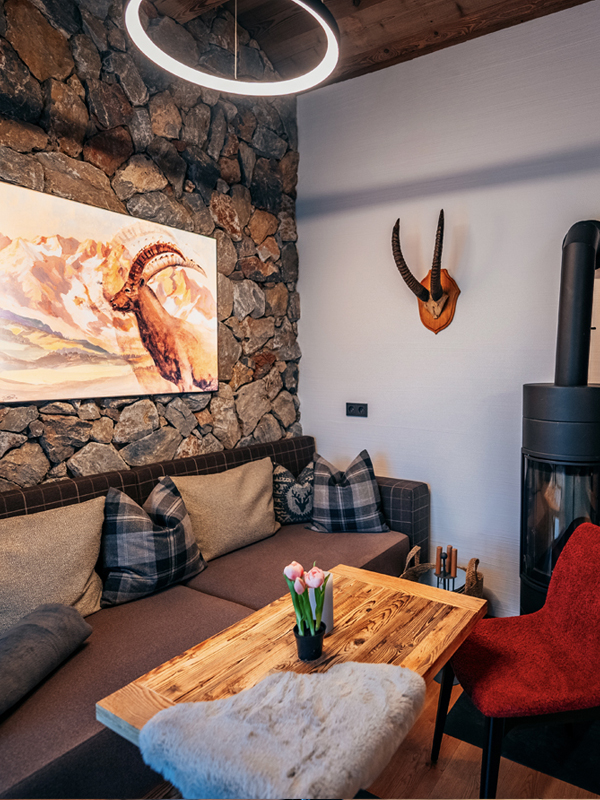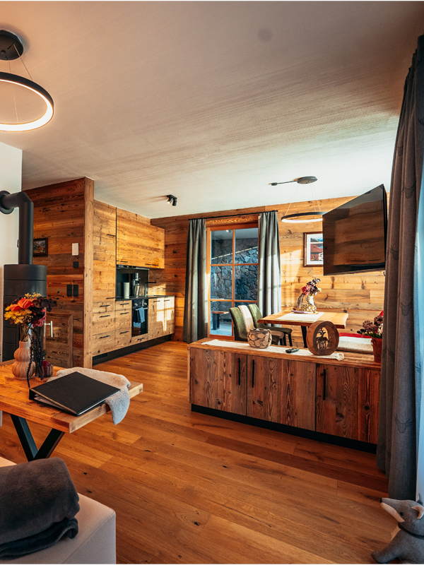 Tagsüber lockt die unberührte Landschaft mit klarer Bergluft und atemberaubenden Ausblicken, während sich abends eine wohlige Stille über die Alpen legt. Drinnen erwartet dich eine Atmosphäre aus warmem Holz, stilvollem Design und dezentem Luxus. Die behagliche Einrichtung lädt dazu ein, die Zeit zu vergessen, während das sanfte Knistern des Kamins den Raum mit wohliger Wärme erfüllt.